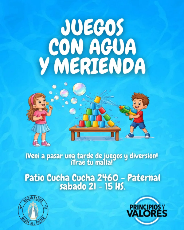 💦🫧JUEGOS CON AGUA Y MERIENDA🫧💦 Este sabado 21 en la plaza "Patio Cucha Cucha" vamos a estar llevando juegos con agua para los más chicos y una merienda para compartir con todos. Venite con ropa que se pueda mojar y ganas de jugar un rato con amigos y vecinos del barrio. 📍Cucha Cucha 2460 - […]