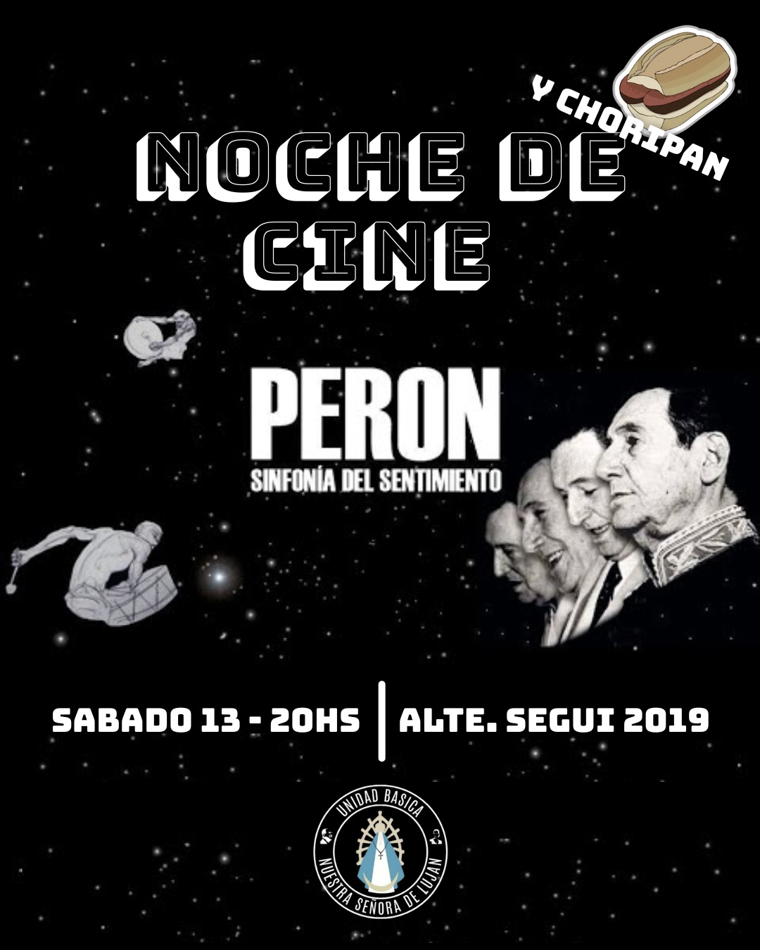 🎥🍿NOCHE DE CINE Y CHORI🍿🎥 Este próximo sábado 13 de septiembre vamos a proyectar la primera parte del documental de Leonardo Favio "Peron, Sinfonía de un sentimiento". Le siguen unos choris como corresponde. ¡Te esperamos! 📅 Sábado 13 de Septiembre - 20hs 📍Alte. Segui 2019 - Paternal.